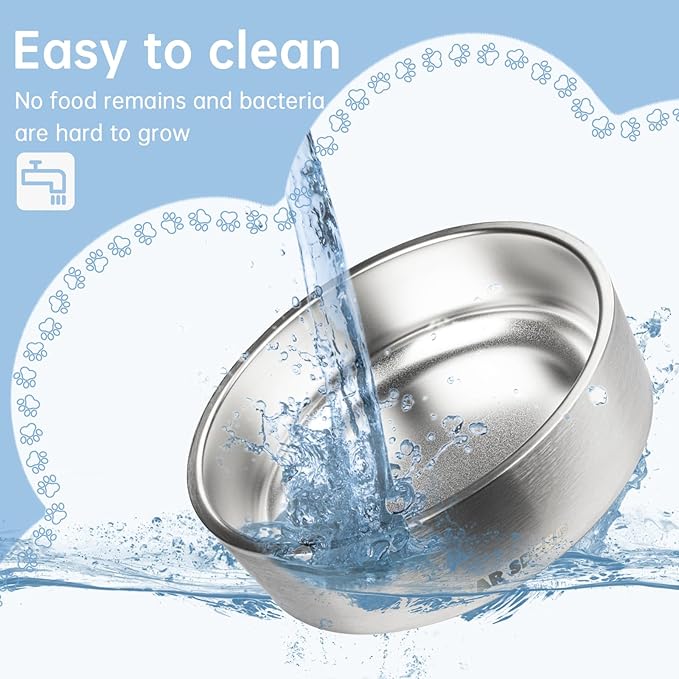 • 【Easy to Clean】The stainless steel dog water bowl uses polishing technology to create a smooth surface. These crafts can help customers to clean easily. Dishwasher safe and soft towel wash. These metal bowls are perfect for dogs, cats, rabbits or other animals
