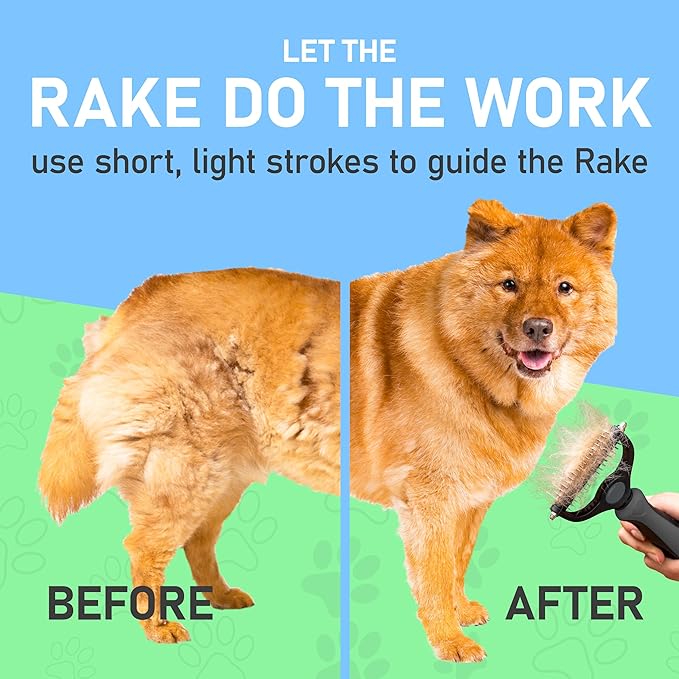 - EFFECTIVE DESHEDDING TOOL: Our dematting and deshedding tool gently removes loose hair and eliminates tangles, knots, dander, and trapped dirt. The perfect cat brush or dog grooming brush solution for pets with thick fur or dense double coats.