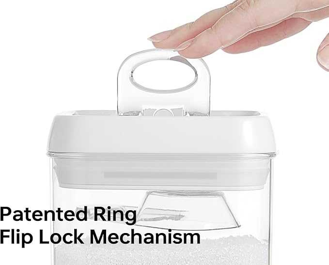 - IDEAL FOR STORING FOOD & GOODS IN BULK: 5” LARGE size Flip Tite containers hold more than standard canisters. Ideal for organizing pantry staples like rice, flour, sugar, oats, cereal, and protein powder. Its wide-mouth design makes it easy to scoop and refill, while the airtight seal keeps ingredients fresh longer.