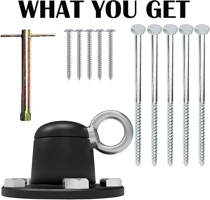 - All you need is a hammer to drive the five 8-inch bolt anchors into rocky or hard ground to secure the swivel base.