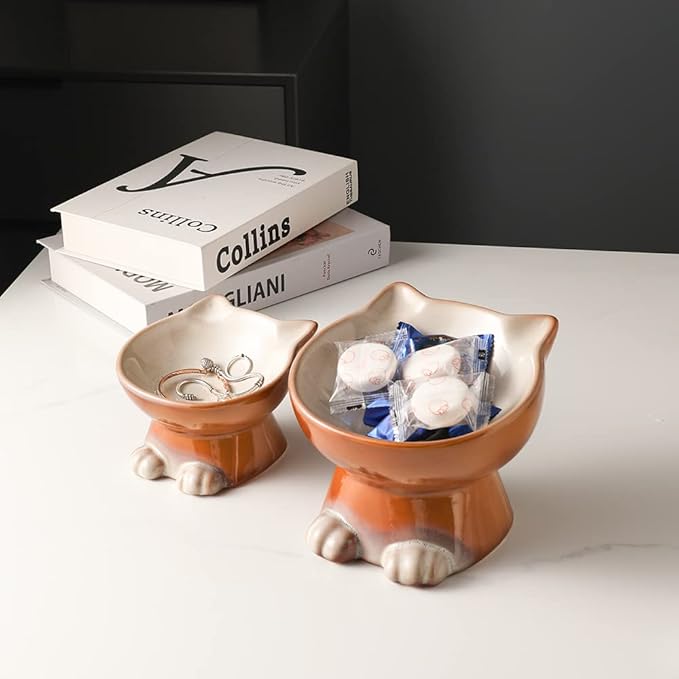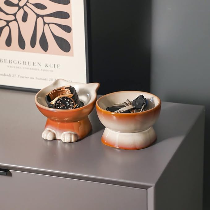 - 【Safety】This stable raised cat food bowl makes secure eating without the mess of tipping over.This dog bowl is food safe, ceramic mini cat bowl is easy to clean, and can be used in Microwave & Dishwasher.