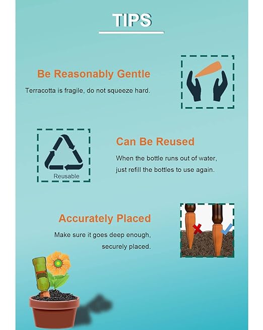 - [ EASY TO USE ]: Just place the water bottle or plastic bottle on top of the self watering spikes, insert it into the soil together, keep it firmly in place, and it will automatically release the water. You can choose how deep you insert it based on your plant's water preferences.