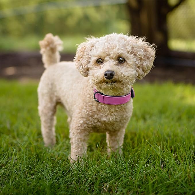 Didog Soft Padded PU Leather Dog Collar, Breathable and Adjustable Dog Collars for Small Dogs, Comfortable for Daily Walk, Purple, M Fit Neck 12-15"(13-22 lbs)