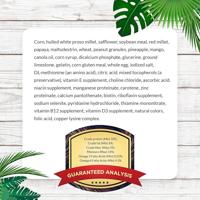 - 100% SATISFACTION GUARANTEE: we are a small family company that works hard to produce gourmet pet bird food, which is why we're confident in offering a 100% satisfaction guarantee