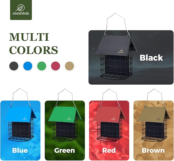 - CUTE DESIGN - Weather proof roof shelters suet from the weather, so your suet lasts longer. Durable all-metal structure with powder coated fnish will not rust, great for year-round use!