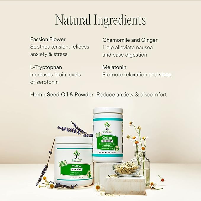 pawTree Chillax - Natural Calming Hemp Chews for Dogs and Cats - Formula to Relieve Stress and Tension; Ease Travel, Separation Anxiety and Soothe Fear - Small Soft Chews (60 Count)