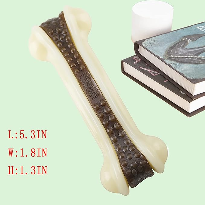 - ✱ Bone shape design: The real bone shape makes your pet easy to recognize, establishes a positive connection with the dog toy, and reduces their anxiety and boredom. Interesting, curved design which makes it easy for dogs to hold and chew