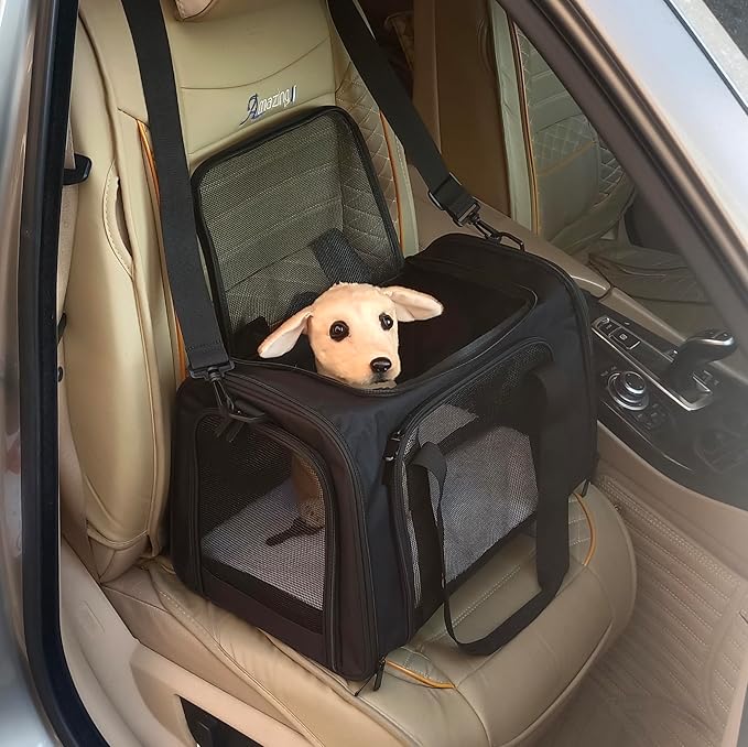 Cat Carrier Dog Carrier Pet Carrier Cat Bags for Small Medium Cats Dogs Puppies of 15 Lbs,of Airline Approved Small Dog Bag Soft Sided,Collapsible Travel Puppy Carrier (Medium, Black)