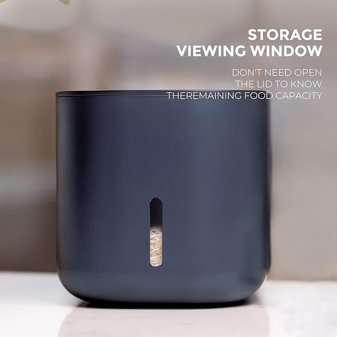 - Light Blocking & Storage Viewing:The non-transparent food storage bin effectively blocks sunshine and other light source to keep your dry food in better condition. A small viewing window in the front allows you to see clearly when your food storage is reaching the bottom so you can refill it timely.