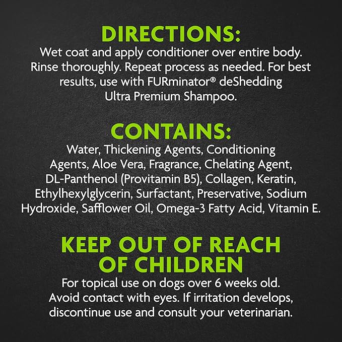 - GROOMING CONFIDENCE: The FURminator Ultimate Hair Reduction System has four steps for a complete at-home grooming regimen. Regular shampooing and conditioning promotes healthy skin and coat