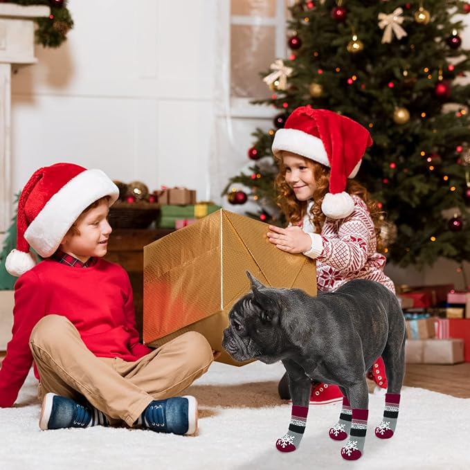 - Package Include: One pack includes 6pcs dog socks, 2pcs for replacement. After long time wearing, you can replace new one for your pets. Hand wash preferred. Cute snowflakes, full of winter atmosphere, perfect gifts for Christmas.