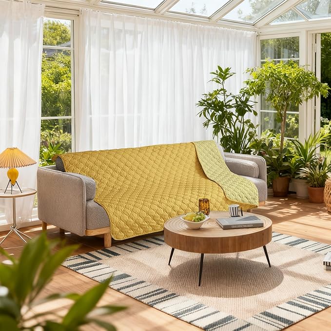 gogobunny 100% Double-Sided Waterproof Dog Bed Cover Pet Blanket Sofa Couch Furniture Protector for Puppy Large Dog Cat, Reversible (82x82 Inch (Pack of 1), Dark Yellow/Light Yellow)