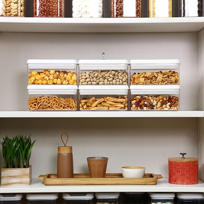 - AVAILABLE IN VARIOUS SIZES & SHAPES: The Felli Flip Tite container provides a wide variety of sizes and shapes, each designed to accommodate different types and amounts of food. The 4” REGULAR & RECTANGULAR sizes are ideal for small kitchen counter pantry organization, and their design ensures easy handling and pouring. The 5" LARGE size is perfect for storing powders that require scooping. Finally, the 6” XL size is specifically designed for bulk storage, making it versatile for various storage needs.