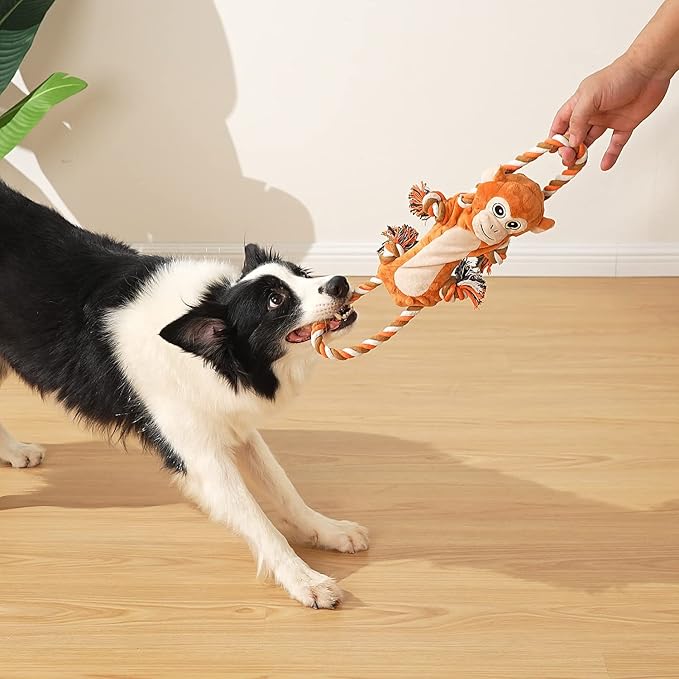 Dog Tug Toys, Stuffed Animal Dog Chew Toy, Cute Puppy Squeaky Dogs Plush Toys with Crinkle Paper for Small, Middle, Large Breed