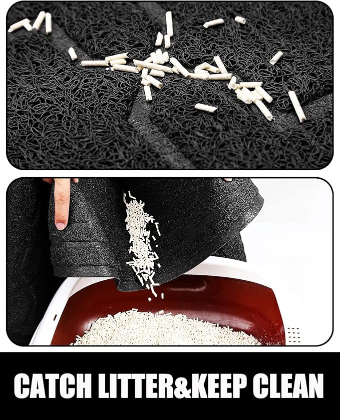 - NON-SLIP & WATERPROOF: Our cat litter mat litter trapping mat non-slip Litter boxes rug backing has a non-slip texture that holds your litter boxes in place, will not slip. Bottom layer is waterproof can keep a mess of spilled pet's water and urine on the litter pads, instead of on your floor