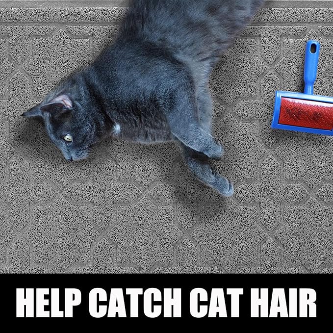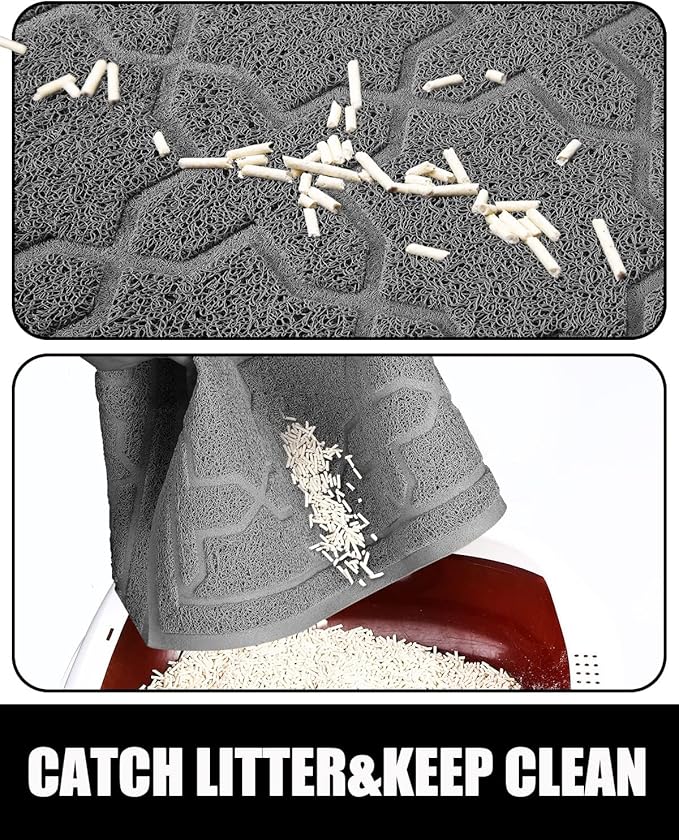 - NON-SLIP & WATERPROOF: Our cat litter mat litter trapping mat non-slip Litter boxes rug backing has a non-slip texture that holds your litter boxes in place, will not slip. Bottom layer is waterproof can keep a mess of spilled pet's water and urine on the litter pads, instead of on your floor