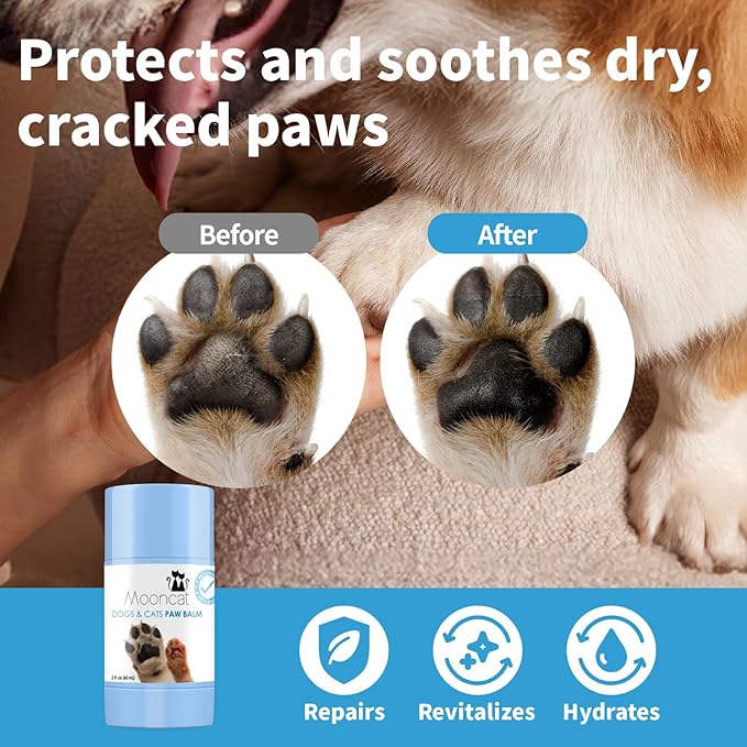 Mooncat Cat Paw Balm – Cat-Specific Paw & Nose Moisturizer for Dry Cracked Pads, Fast Absorbing Lick Safe Natural Botanical Care, Non Greasy Fragrance Free Protection & Repair - 2oz (60ml)