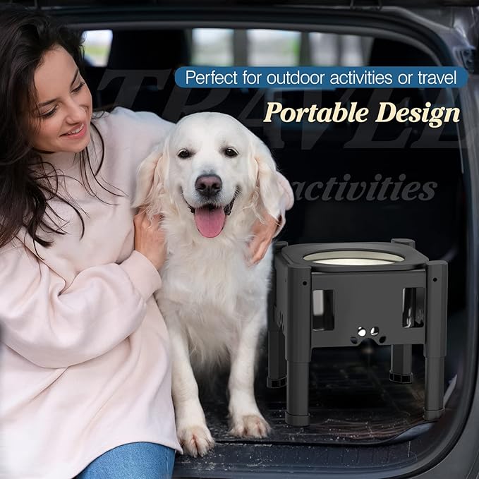 - 🐕【Stable & Easy to Clean】: The dog bowl stand is made of high-quality and sturdy plastic material. Anti-skid pads at the ends of the legs prevent the elevated dog bowls stand from moving around while eating. The detachable dog water bowl is made of premium stainless steel, rust-resistant and shock-proof, can be used in dishwashers, easy to clean and can be reused for a long time.