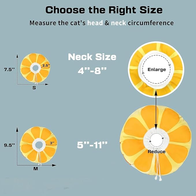 - Suit for all Size of Cats: We offer 2 sizes of cat cone, and the middle of each cone is adjustable, ensuring a definite fit for your cat. Size M fits (9.5 "x9.5 "x2.2ββ) cats with a neck circumference of 5-11 inches