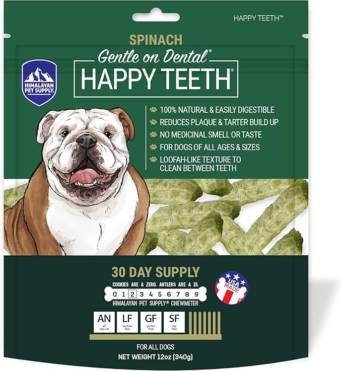 Himalayan Dog Chew Happy Teeth Spinach Dental Chews - Dog Teeth Cleaning, Dental Treats for Dogs, 100% Natural, Digestible, Removes Plaque and Tartar, Gluten, Soy, Lactose Free, 30 Day Supply