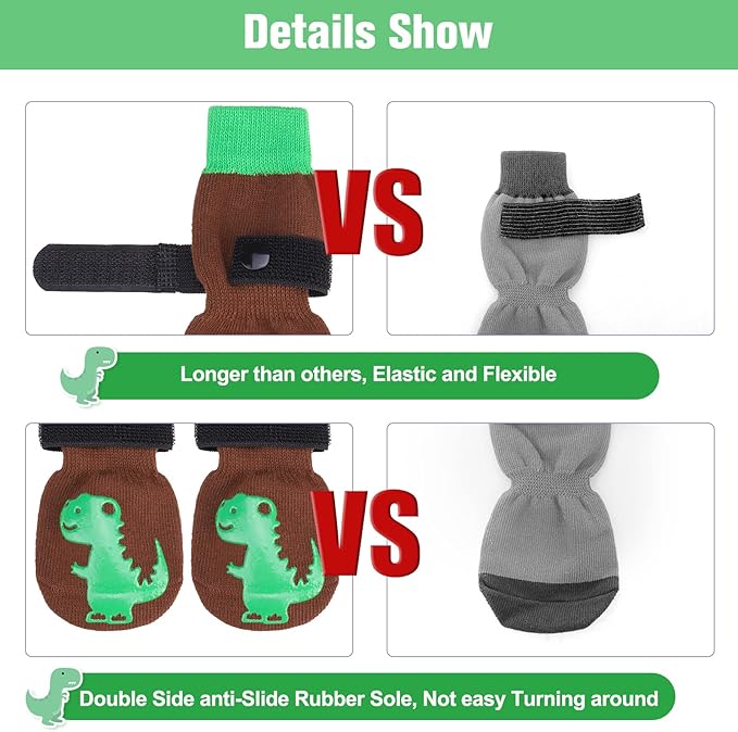 - Non-Skid: For hardwood floor, if your baby has problems who was splaying and keeps slipping on your wooden floors with back legs, we suggest you would buy these the soles which have anti-slip adhesive, which can provide extra traction. Besides, wearing a non skid sock prevents dogs from licking and irritating the wound further aid in healing foot wounds.⚠️Please note we have design patent to protective this exclusive design!