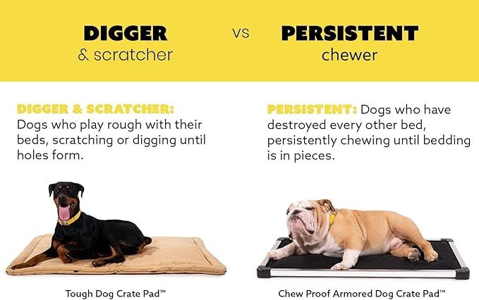 - Durable Ripstop Ballistic Exterior: The heavy-duty cover will withstand scratching, digging, and occasional mouthing or chewing. Great for dogs that like to get a little rough with their beds! For dogs that tend to chew heavily when crated, especially due to anxiety, we recommend one of our Chew Proof Armored Padded Dog Crate beds instead.