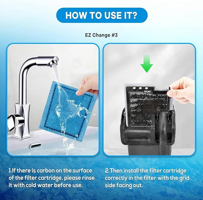- 【Ready to use】Our filter cartridge is already set up, it just needs to be installed correctly on the power filter and it is ready for quick filtration. If there is carbon on the filter cotton, please clean it before use.