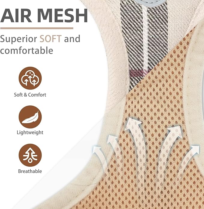 - [REFLECTIVE, PLAID PATTERN] - This Harness has two sides of reflective straps, and the middle logo also is reflective, so if you walk with your dog at night, then both of you will be safer! In addition, the classic plaid pattern is designed by our internal brand team, so it's very different from other normal harnesses. This plaid pattern looks both classic and stylish and is never out of date