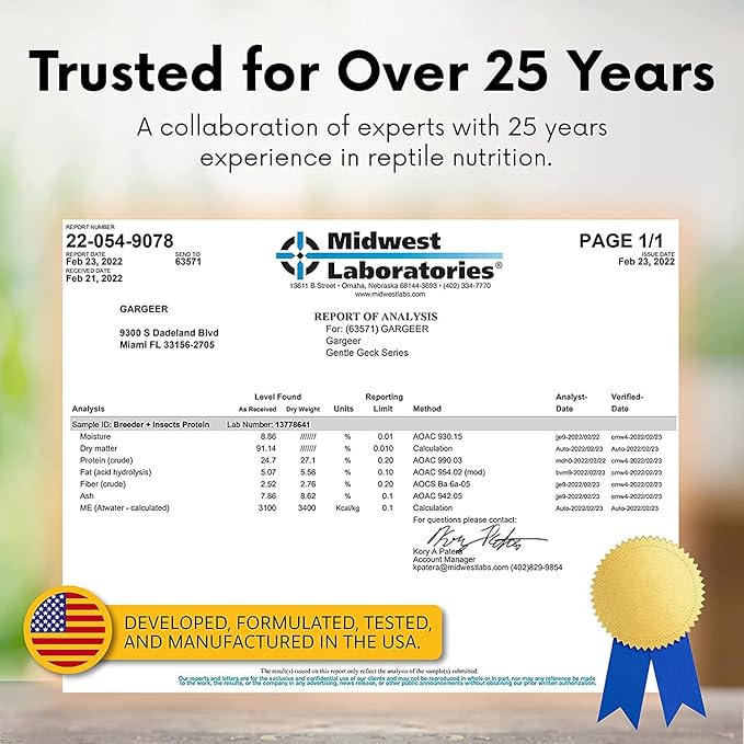 - EXPERTISE. Formulated and manufactured by a herpetologist and pioneer in the reptile nutrition industry with over 25 years of experience.