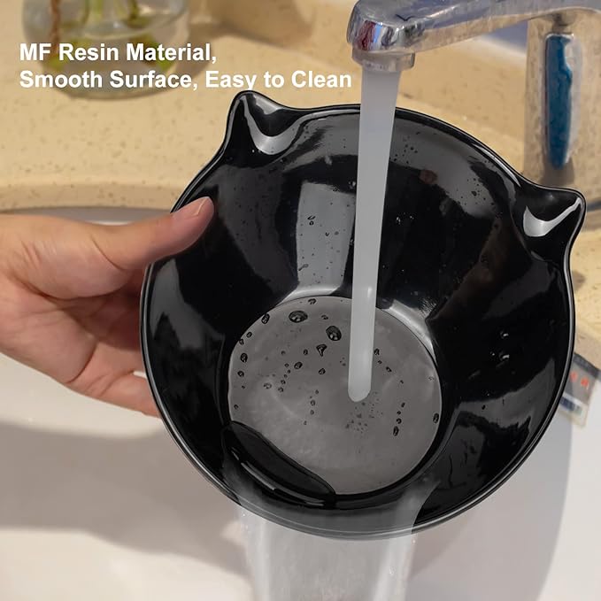 - High Quality Material:The elevated cat bowl is mainly made of MF resin,which helps the health of cats and puppies. It is light weight and easy to carry. Cat food bowl size :Front height: 3.6 inches, rear height: 5.7 inches. Cat bowl diameter 6.6 inches