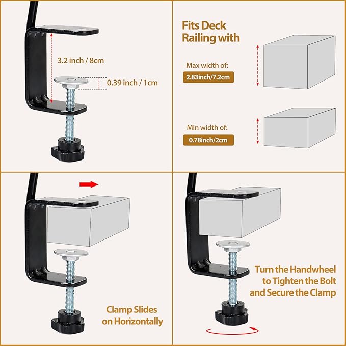 - Detachable Function: Bird feeder hanger with swivel wing-nut design, can effortless adjust the angle, place feeder or planter away from deck for keeping neat; Keep seeds and bird droppings away from the deck, no need to clean up messes constantly
