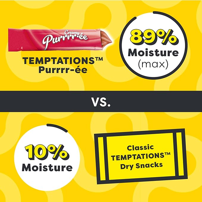 - Cats Lose Their Cool: Temptations Creamy Puree Wet Cat Treats deliver irresistible beef liver flavor in a squeezable, creamy puree your cat will come running for