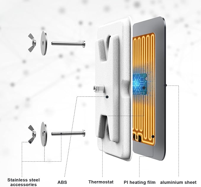 - Use high thermal conductivity materials. The front panel of this high efficiency bird heater is made of metal aluminum to supply more comfortable heat. The material of the back panel is insulating plastic, it effectively prevents heat waste.