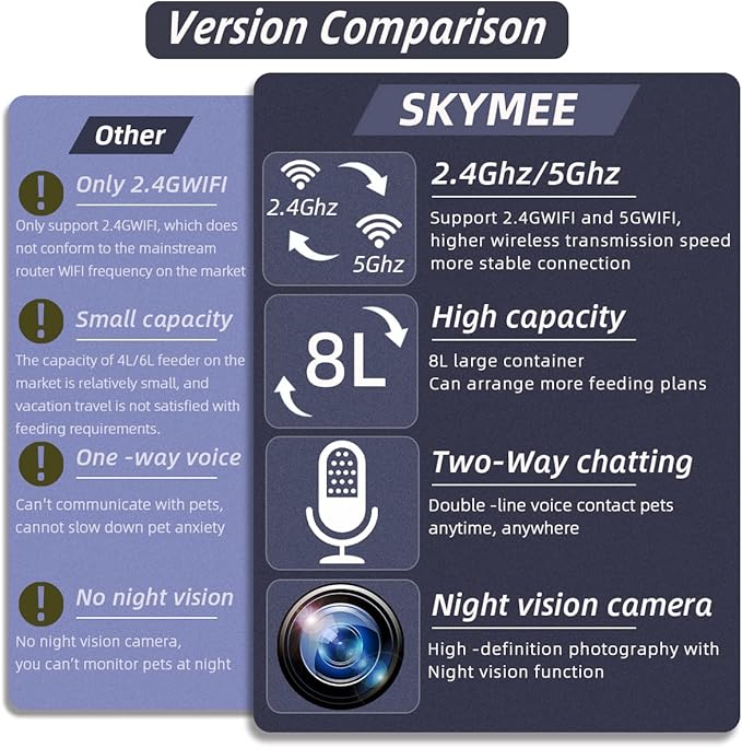 SKYMEE 8L/12L 2.4G & 5G WiFi Aautomatic Large Dog Feeder & Automatic cat feeders -1080P Full HD Pet Camera Treat Dispenser with Night Vision and 2-Way Audio