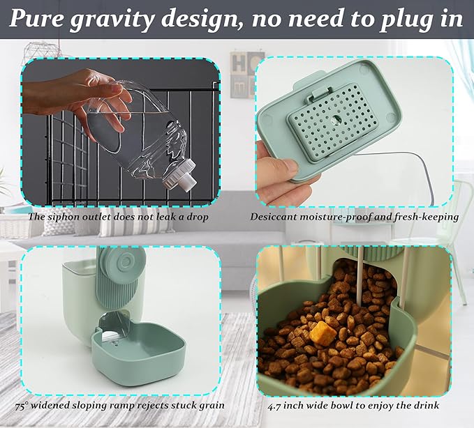 - Big Capacity Feeder and Waterer : 1*Feeder, 1*Water dispenser. Large capacity 35oz×2, can hold about 2.2 pounds of food and about 1L water, can last about 3-5 days for small pets, 1-2 days for big pets, you can rest assured to go on vacation, work, party, do not have to worry about pets will be thirsty
