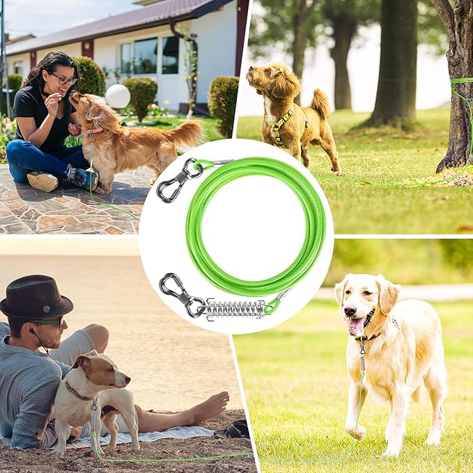 - Ultra Strong Dog Tie Out - The inner core of our dog wire leash is consits 7*19 stainless steel wire which is the most tightly twisted and most sturdy structure of dog cable. The outer skin is chew proof vinyl coating, and the crimps of the two end has been double hardened. Our dog tie out cable have been rigorously tested, it's perfect for dogs up to 500LBS.