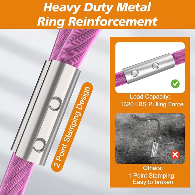 - Ultra Strong Dog Tie Out - The inner core of our dog wire leash is consits 7*19 stainless steel wire which is the most tightly twisted and most sturdy structure of dog cable. The outer skin is chew proof vinyl coating, and the crimps of the two end has been double hardened. Our dog tie out cable have been rigorously tested, it's perfect for dogs up to 500LBS.
