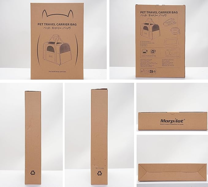 Morpilot Portable Cat Carrier - Soft Sided Cat Carrier for Medium Cats and Puppy up to 15lbs, Pet Carrier with Locking Safety Zippers, Foldable Bowl, Airline Approved Travel Dog Carrier - Light Gray