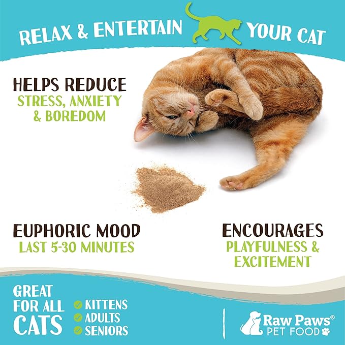 Raw Paws Silvervine Powder, 75 Grams - 2X More Attractive than Catnip for Cats, 100% Silver Vine Gall Fruit Powder, Matatabi Silvervine Cat Toy for Indoor Cats, Catnip Kitten Toys, Silvervine for Cats
