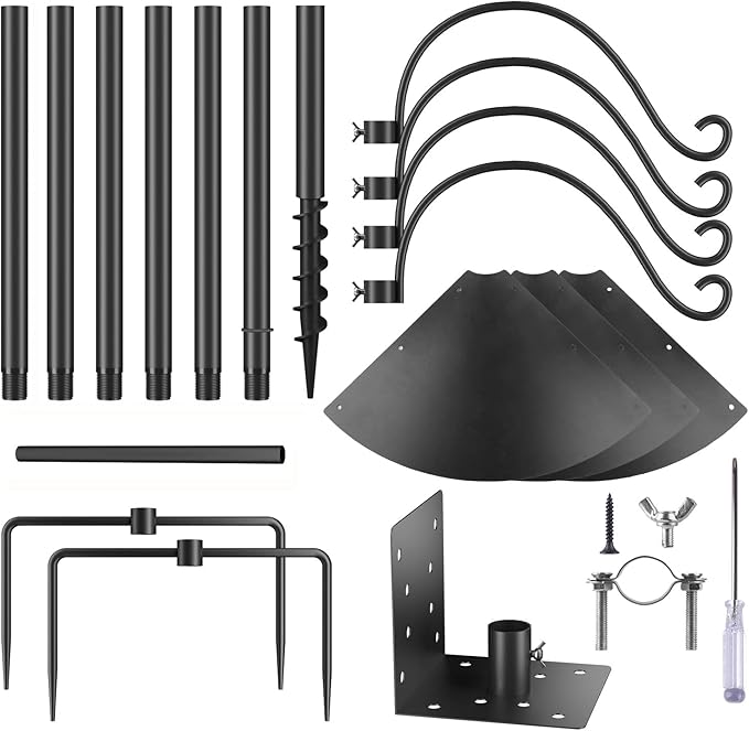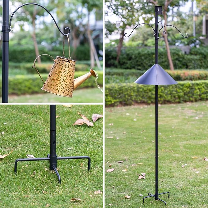 - VERSATILE POLE SET: The pole for bird feeder features 4 shepherd hooks, allowing you to decorate your garden with lanterns, flowerpots,etc, making it both functional and visually appealing. 30-day money-back and one-year replacement policy is guaranteed.Feel free to contact us any time when