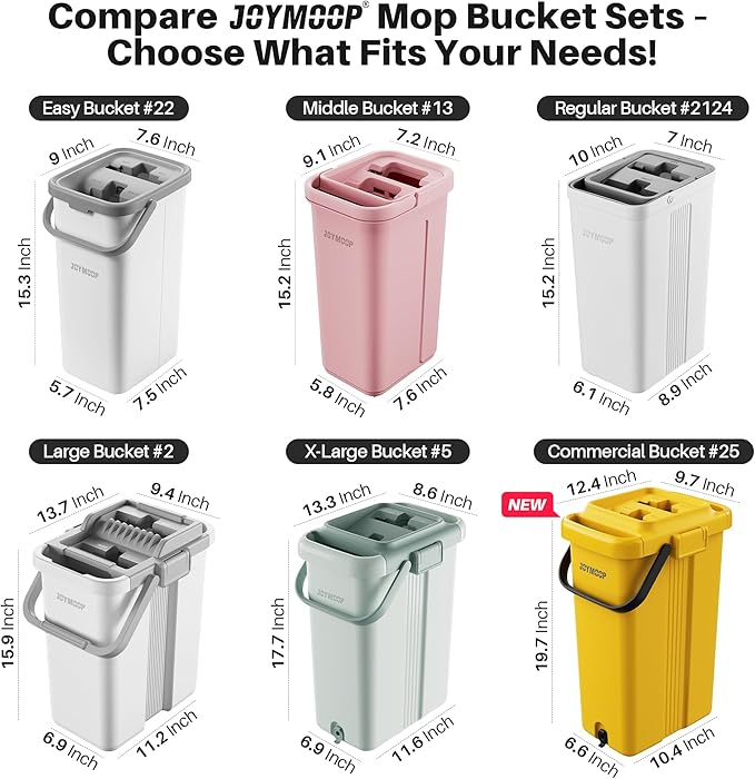 JOYMOOP Mop and Bucket with Wringer Set, White Flat Squeeze Mop Bucket Set for Floor Cleaning, Wet Dry Mop for Walls, Wall Cleaner with Long Handle, Hardwood Floor Mop-5 Microfiber Cloths