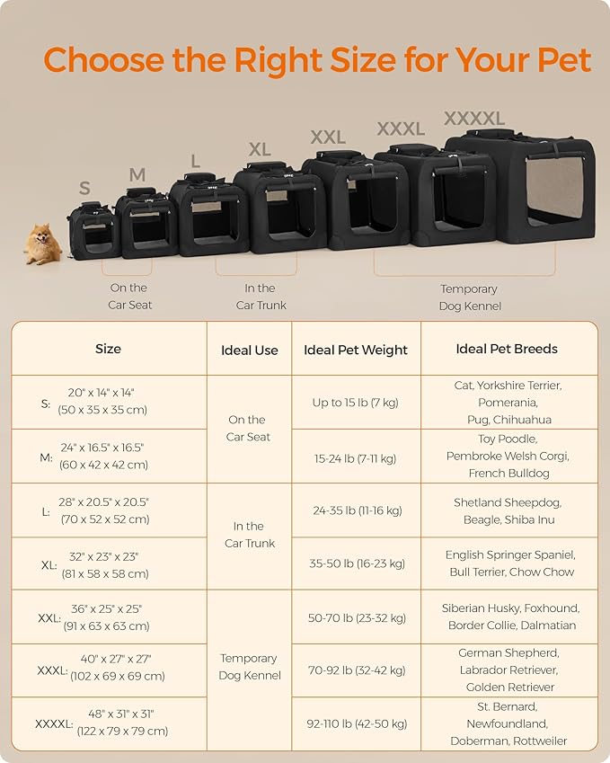 - 【CHOOSE THE RIGHT SIZE】This 24" x 16.5" x 16.5" collapsible dog carrier is ideal for pets between 15-24 lb. Please read our tips on the pictures to measure your pet and choose the right size