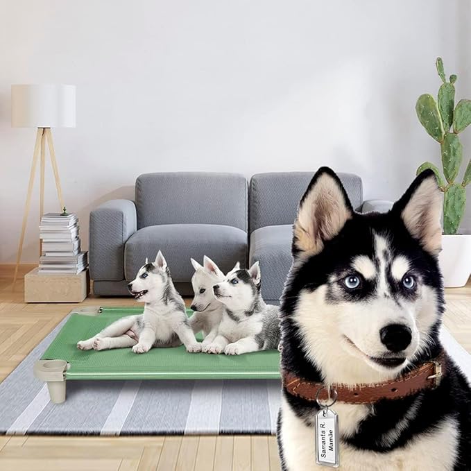 Acrimet Cooling Elevated Pet Dog Bed, Washable and Breathable Mesh Cot, Stainless Steel Frame, Indoor & Outdoor Use, fits Dogs up to 110 lbs (Size: 40” x 24”), Green, 1 Unit