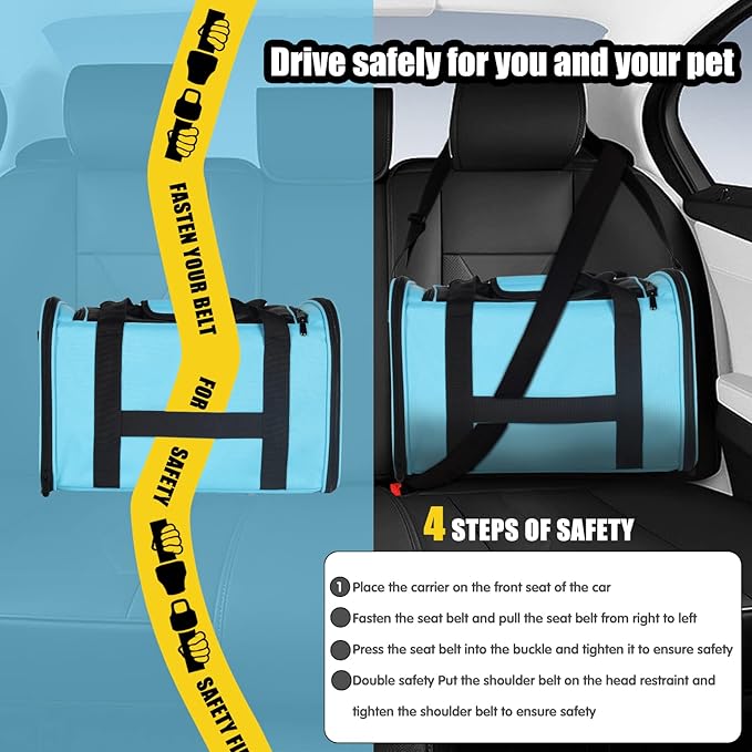- 【AIRLINE APPROVED】: This cat carrier is designed with airline approved, it can fit comfortably under most flight seats, we can take our pets wherever we want. Dog travel carrier offers two attachment loop handles that can be used as a dual harness or as a luggage strap for balanced carry and secure transport.