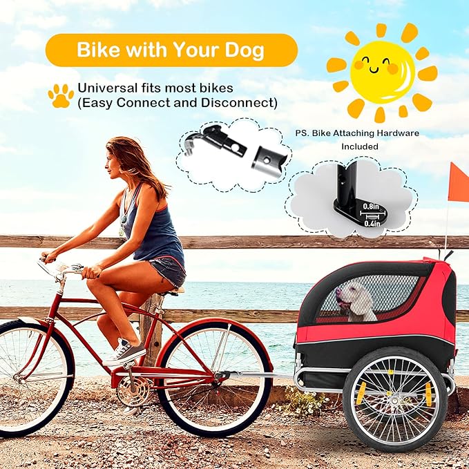 - Easy Connects to Most Bikes - The dog bike trailer hitch easily connects to any bicycle with robust connectors & fasteners, and quickly disconnects when riding’s over. (PS. Bike attaching hardware included.)