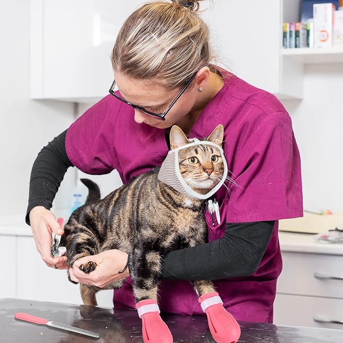 - What You Will Get: package includes 1 piece of cat muzzle, 1 set of boots for cats, 1 set of nail clippers trimmer; Nice combination is practical and convenient, make you have no worries when grooming pets