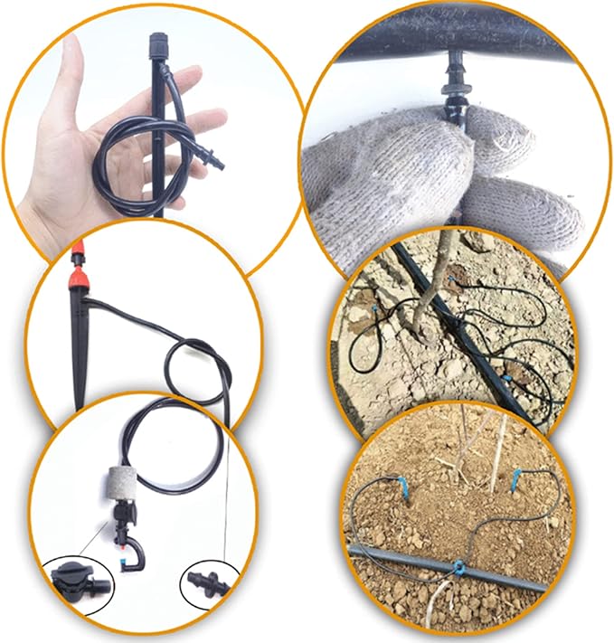 - βΆ π ππ ππππππππππ: Irrigation tubing comes in different sizes, lengths, and thicknesses to suit different irrigation needs. It is typically made from high-quality, UV-resistant materials that can withstand exposure to sunlight and harsh weather conditions. Tips: Put the drip irrigation hose into HOT water, for 10 seconds before assembling.