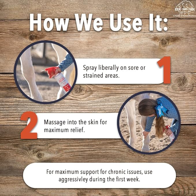- Easy to Use: All natural Horse Liniment combines transdermal Dead Sea magnesium, arnica, and eucalyptus to provide immediate relief. Spray liberally on sore or strained areas and massage into skin. For lingering strains, reapply after 15 minutes and then every 3-4 hours.