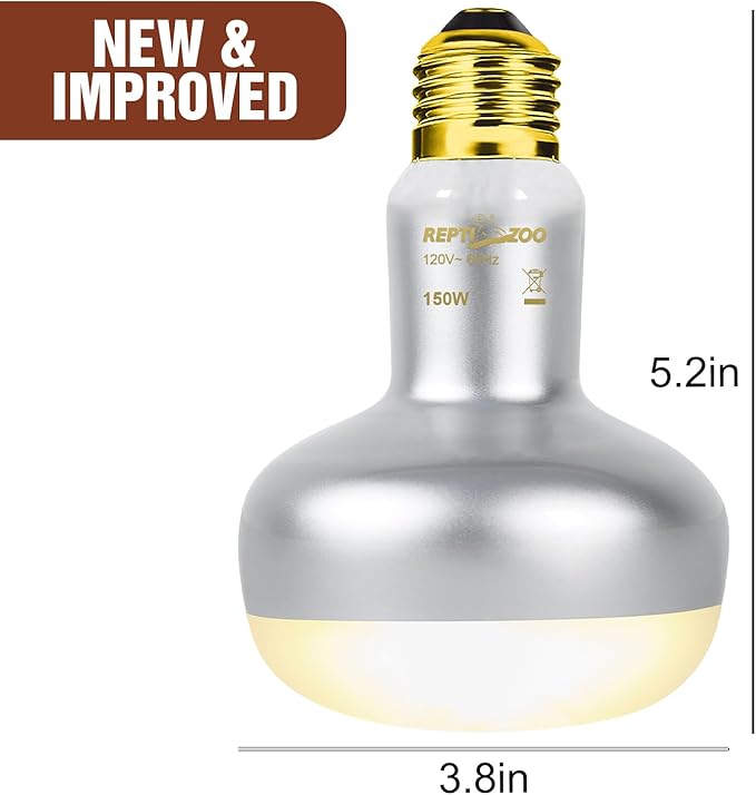 - 【Long Service Life】Adopt updated vacuum aluminizing process technology, the efficiency of the 150W heat lamp bulb increase by 35% and save more energy. Good quality results from upgraded process and the reptile heat lamp can be used over 2000 hours, max 3000 hours.