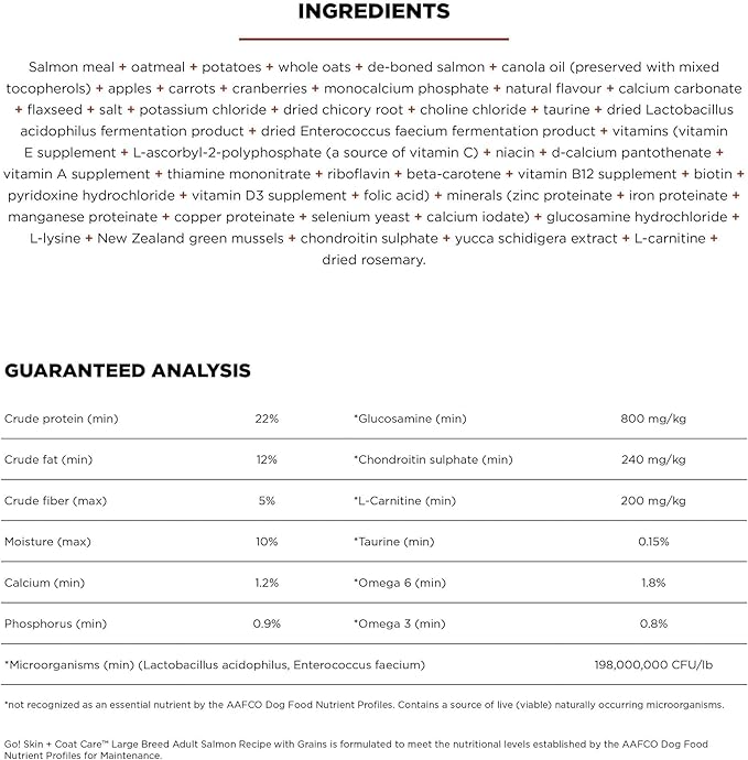 - SKIN & COAT WELLNESS: Help your dog look and feel their best with Go! Solutions' Skin + Coat Care range. Enriched with omega fatty acids which promote healthy skin and a radiant, lustrous coat